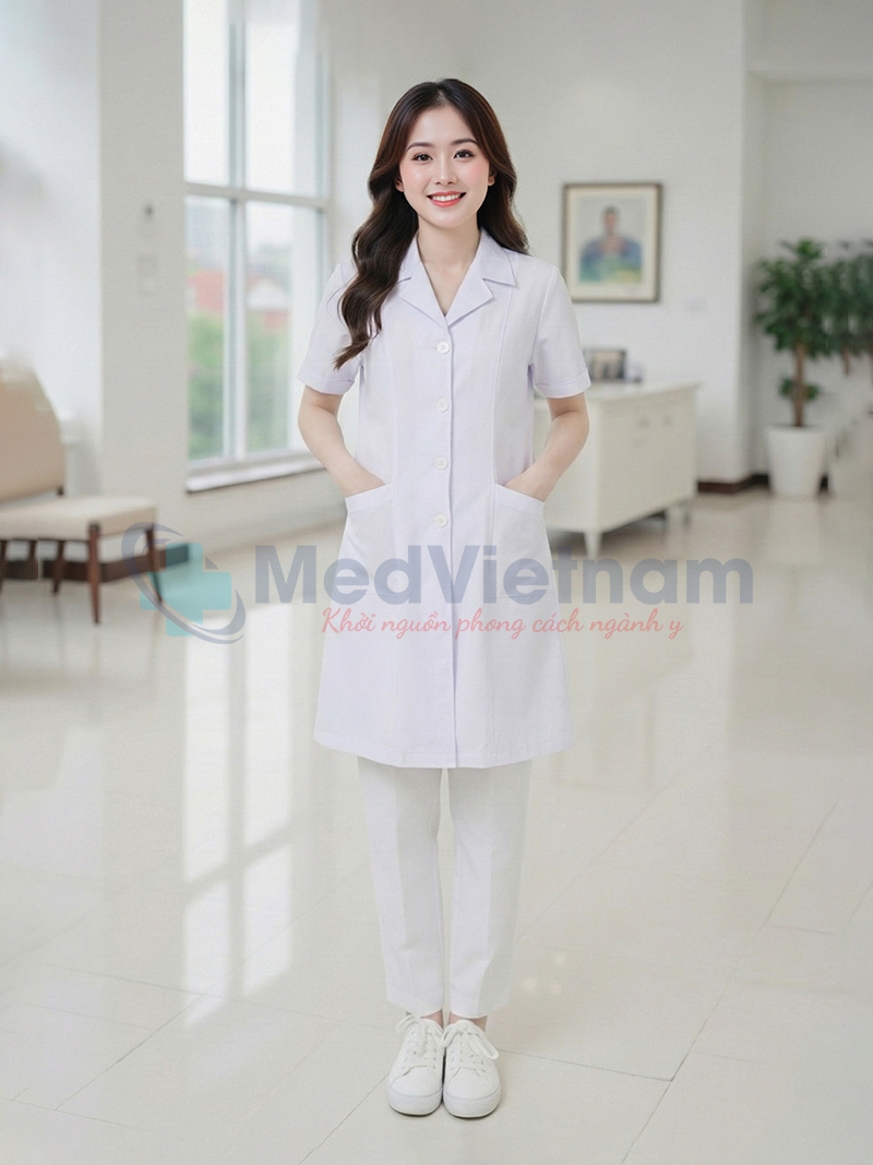 Sản phẩm: Áo blouse bác sĩ nữ dáng dài cộc tay chất liệu mềm mại, Size M