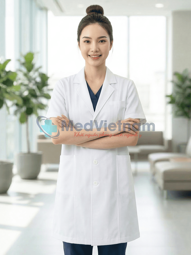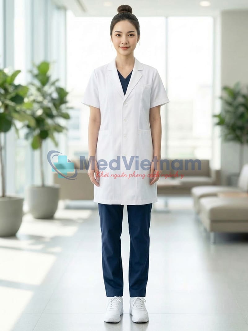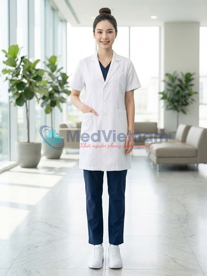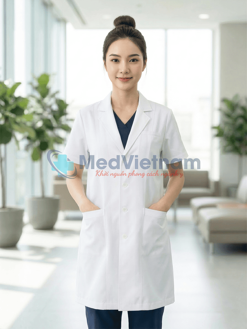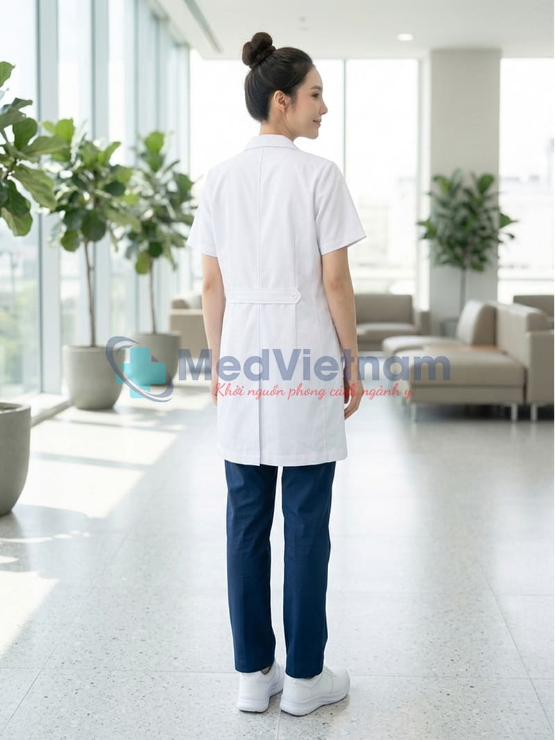 Sản phẩm: Áo blouse bác sĩ nữ ngắn tay thiết kế cổ vest , Size M