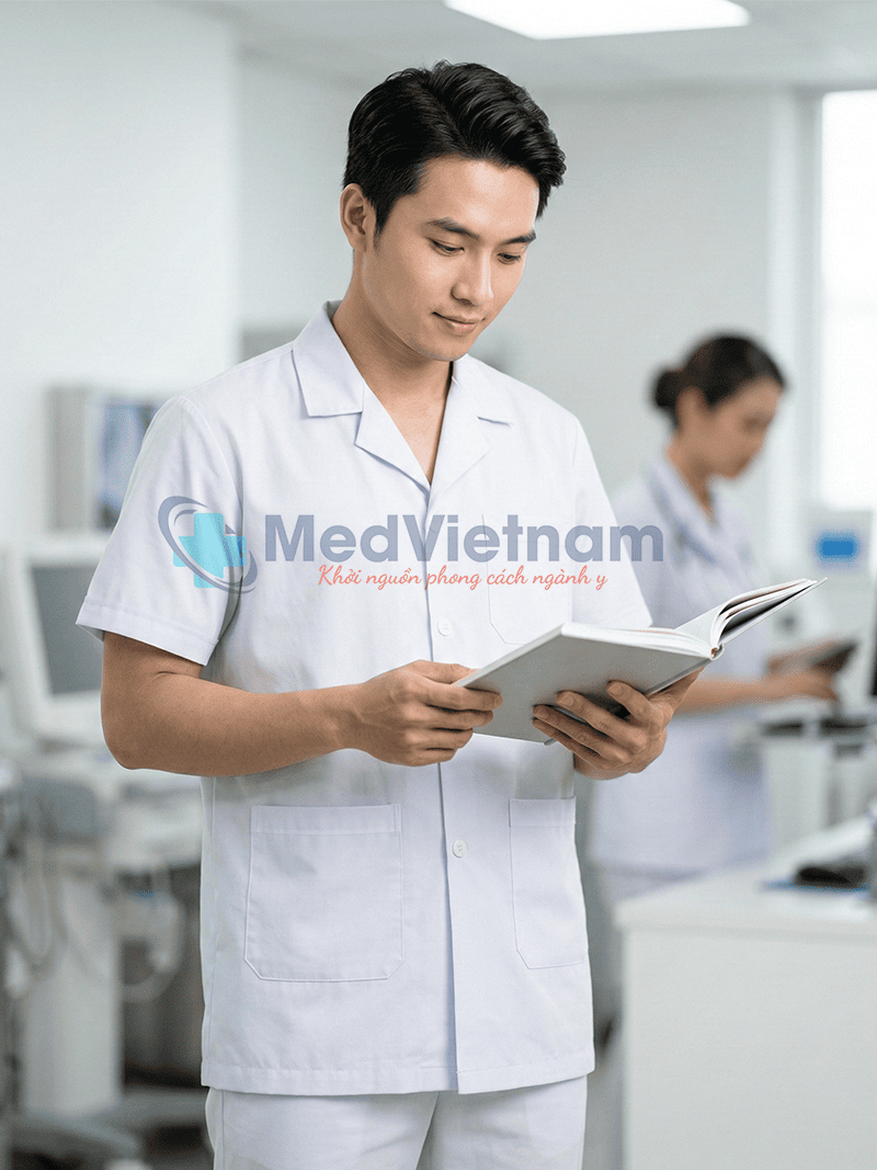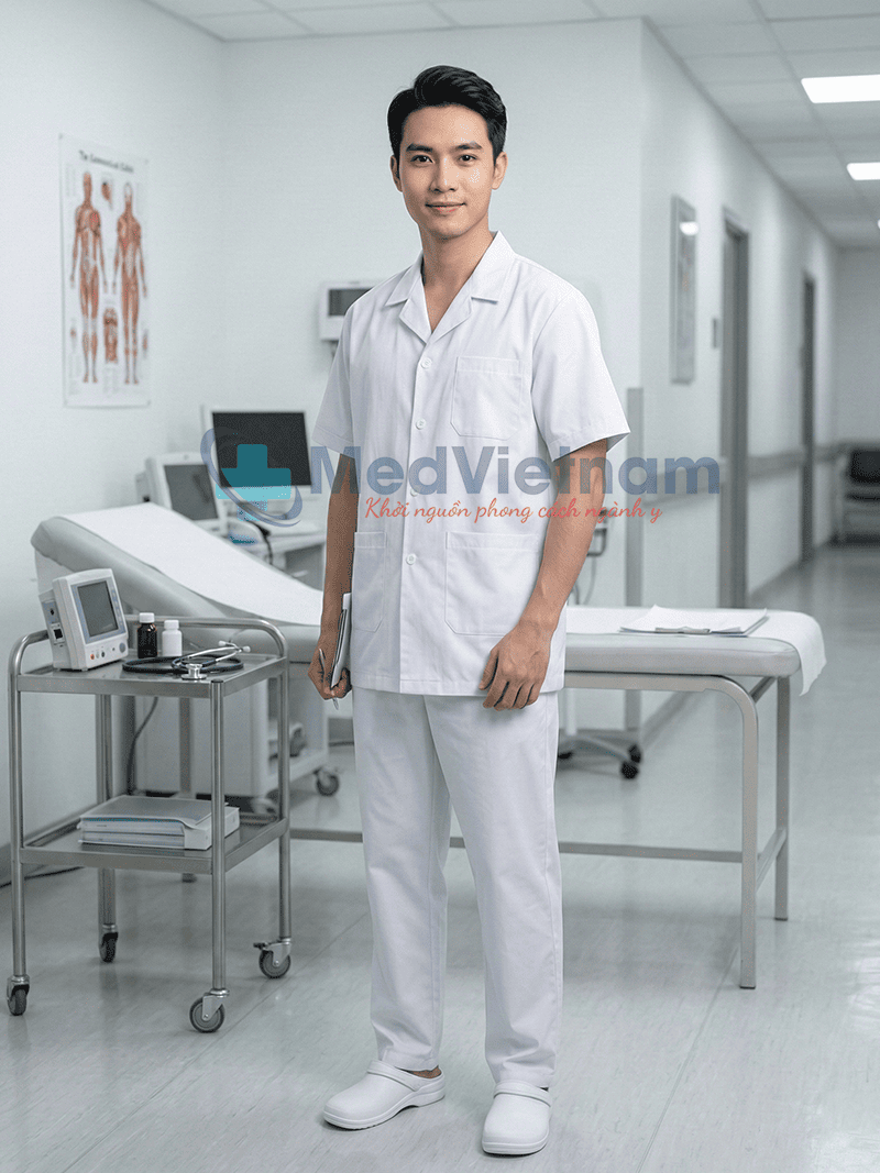 Sản phẩm: Áo blouse dược sĩ nam cộc tay vải lon Mỹ chuyên dụng, Size M