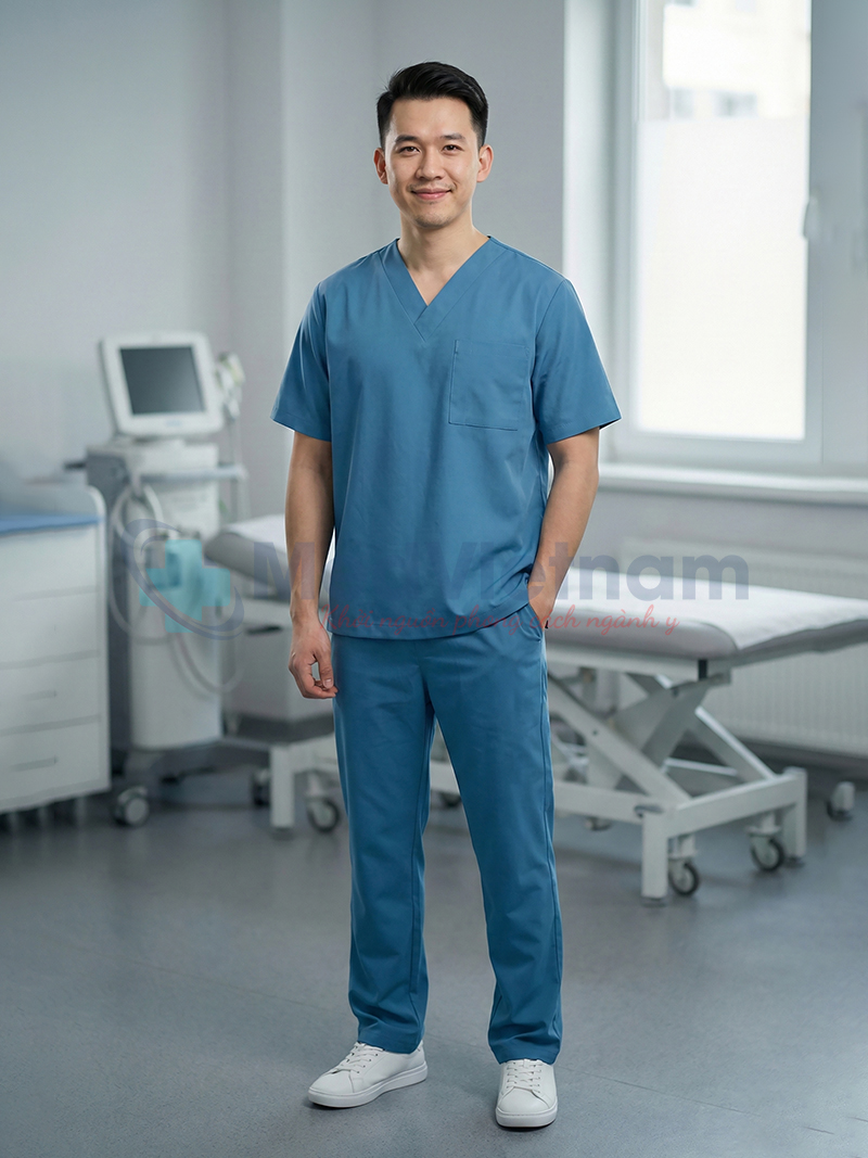 Bộ quần áo scrubs nam màu xanh dương là dòng đồng phục y tế được nhiều bệnh viện và phòng khám lựa chọn nhờ thiết kế hiện đại, dễ mặc và phù hợp với môi trường làm việc chuyên nghiệp. Tông màu xanh dương mang lại cảm giác sạch sẽ, nhẹ nhàng và tạo sự tin tưởng cho bệnh nhân.